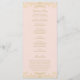 Élégante carte de programme de cérémonie mariage d'inspiration vintage présente un design décoratif orné de bordures avec un aspect scintillant or champagne métallique et couleur arrière - plan rose rousse.