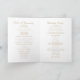 Élégant programme de mariage plié en faux or avec un design simple et minimal avec les noms de la mariée et du marié dans une police serif traditionnelle et les noms de milieu et de famille dans un élégant script de calligraphie. Un style classique qui conviendra à merveille à une mariage officielle.