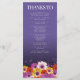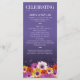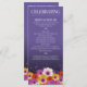 Ajoutez une touche d'élégance à votre journée de mariage avec ce programme à thème floral, qui présente le service mariage et la fête de mariage en lettrage blanc élégant avec confettis violet lavande et des pâtisseries africaines colorées sur un arrière - plan violet violet à noir. Personnaliser avec les noms de la mariée et du marié, lieu de la réception, date de réception, détails du service et fête de mariage. Design © W.H. Sim. Voir plus sur zazzle.com/expressionsoccasions