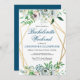 Des fleurs aquarelles boho de couleur bleu clair, rose et blanc à l'intérieur d'un double cadre géométrique doré présentent des éléments botaniques et de baies. Personnalisez cette invitation de week-end d'enterrement de vie de jeune fille élégante avec vos propres couleurs et polices ou gardez cette typographie populaire telle quelle pour votre commodité. Mélangez et assortissez avec d'autres éléments de cette belle collection de mariage.