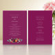 Make your wedding ceremony memorable with this stunning deep pink floral wedding program. The design showcases a vibrant deep pink hue complemented by a delicate floral border, creating a romantic and luxurious feel. This program is perfect for outlining your ceremony proceedings, from the processional to the recessional. Its elegant design ensures it will be a cherished keepsake for you and your guests.