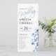 Programme de mariage floral bleu romantique avec écriture élégante
