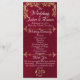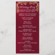 Ce design romantique présente un élégant arrière - plan bordeaux et une frontière de feuilles d'or, détails de cérémonie de mariage et merci sur le devant avec les membres de la fête de mariage sur le dos. Disponible en plusieurs couleurs pour votre thème mariage. Disponible en plusieurs couleurs pour votre thème mariage. Conçu pour coordonner avec la collection Elegant Doves, Heart & Gold Feuille Mariage Collection. Pour modifier les détails, cliquez sur "Personnaliser". Pour déplacer le texte ou modifier la taille, la police ou la couleur du texte, cliquez sur "Cliquez pour customiser plus loin"