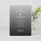 This wedding program features a sleek, minimalist design with a gradient gray background that transitions from light to dark. The clean, modern sans-serif typography emphasizes clarity and sophistication, making it perfect for a contemporary wedding ceremony. Customizable text sections allow you to personalize the event details, while the monochromatic color palette adds a timeless elegance. Ideal for couples seeking a refined and understated aesthetic, this program ensures all necessary information is presented in an organized and stylish manner.