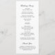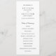 Élégant programme de mariage noir et blanc avec un design simple et minimal avec les noms de la mariée et du marié dans une police serif traditionnelle et le milieu et les noms de famille dans un élégant script de calligraphie. Un style classique qui conviendra à merveille à une mariage officielle.