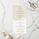Ce menu de mariage élégant présente un élégant texte doré dans des polices classiques et sophistiquées.