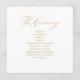 Cet élégant programme de mariage romantique présente un faux script d'or sur un arrière - plan blanc. Personnalisez avec les noms des mariés et des mariés et la date du mariage sur le devant et les détails de votre cérémonie sur le dos. Conçu par Susan Coffey.