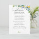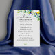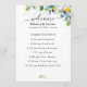 Un programme de mariage de table coloré avec une belle aquarelle verte feuillage botanique et des feuilles d'eucalyptus et des fleurs blanches jaunes et élégantes ensoleillées. Guidez vos invités à travers votre journée spéciale avec cet élégant programme de mariage fleuri jaune, blanc et bleu. Doté d'un design sophistiqué avec des fleurs jaunes délicates, des fleurs blanches douces et des accents bleus subtils, ce programme dégage un charme et une romance intemporels. La typographie raffinée et les détails aquarelles aérés créent une esthétique fraîche et élégante, parfaite pour les mariages du printemps et de l'été. Idéal pour les fêtes de jardin, de plage ou de campagne, ce programme magnifiquement conçu offre une façon gracieuse de présenter les détails de la cérémonie tout en ajoutant une touche d'élégance à votre décor mariage.