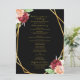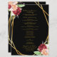 Offrez à vos invités un programme de mariage attrayant et élégant avec un cadre géométrique or élégant et inégal décoré de belles fleurs bordeaux et blanches. Typographie or sur arrière - plan élégant pour tous les détails du programme de mariage.