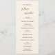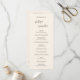 Programme de mariage moderne avec un design simple et minimal avec vos noms et les en-têtes sur le dos dans un script manuscrit contemporain. La palette de couleurs est crème et peut être changée dans l'outil d'édition de design. Ce design contemporain convient à tous les styles de mariage.