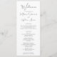 Élégant programme moderne de mariage noir et blanc. Elégant design minimaliste avec une touche moderne avec un texte classique noir clair sur blanc ivoire. Conçu par Austen & Grace. Personnalisez avec les détails de votre programme de mariage, les noms de mariée et de mariée, merci, les détails de la cérémonie, la date du mariage, l'emplacement et la fête de mariage arrière, etc. Vous pouvez customiser tout le texte, les polices, le placement et les couleurs avant et arrière. Nous vous invitations à visiter notre magasin Zazzle pour voir les produits correspondants et plus encore. Veuillez nous contacter si vous avez besoin d'aide.