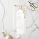 Ces élégants programmes de mariage modernes présentent des illustrations botaniques florales en faux or, encadrent une ligne dorée délicate en forme d'arc. Les détails de votre événement apparaissent dans un script romantique et une police serif sophistiquée. Idéal pour un mariage romantique dans le jardin et une mariage moderne de luxe. Voir toutes les pièces correspondantes dans la collection.