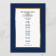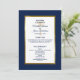 Offrez à vos invités ce programme de mariage simple et élégant avec un script moderne, du texte bleu marine, un palmier doré artistique et une bordure en or métallique et bleu marine. Customisez-le avec vos noms, date du mariage, message de remerciement et détails de la cérémonie. Les noms des fêtes de mariage sont à l'arrière. Contactez-moi si vous avez besoin d'aide ou d'une commande personnalisée.