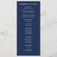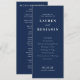 This elegant wedding program features a classic, vertically oriented layout with a deep navy blue background and crisp white text. The design showcases a sophisticated serif font for the main headings and a stylish cursive script for the word "and," adding an element of refinement. Organized sections detail the ceremony components, ensuring clarity and formality, while the overall mood exudes celebration and tradition, perfect for a formal wedding setting.