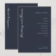 This elegant wedding program features a deep navy blue background with a minimalist layout, creating a sophisticated and formal atmosphere. The design includes a flowing script font for the names on the left, paired with clean, centered sans-serif typography for the ceremony details on the right, ensuring clarity and readability. Customizable elements allow personalization of dates and locations, making it perfect for any wedding celebration. The overall style is refined and modern, ideal for couples seeking an understated yet stylish way to guide their guests through the special day.