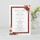 Cette conception de programme romantique et classique de Noël ou d'hiver comprend des grappes de fleurs d'hiver rouges et blanches vibrantes, de pins, de baies sèches et de brindilles rustiques, des graphiques de texte moderne personnalisés et des champs de texte modifiables entourés d'une bordure en damas rouge riche avec des bords dorés.