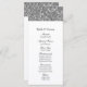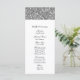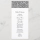 Cette carte vous permet de décrire votre fête de mariage d'un côté, et votre programme de cérémonie de mariage de l'autre. Customisez si vous devez ajouter des lignes de texte supplémentaires. Doté d'une image de parties scintillant argentée (IMPRIMÉE, sans parties scintillant réelle) contre un arrière - plan blanc.