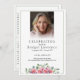 The front features a portrait photo with white blurring at the bottom, while the back includes space for the obituary, order of service, and a customizable section for a poem, prayer, or acknowledgment.