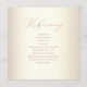 Cet élégant programme de mariage de calligraphie romantique présente une typographie de script d'or faux rose sur un arrière - plan de champagne brillant. Personnalisez avec les noms des mariés et des mariés et la date du mariage sur le devant et les détails de votre cérémonie sur le dos. Conçu par Susan Coffey.