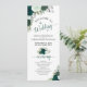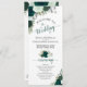 Ce magnifique programme de mariage présente un élégant design chic boho floral avec des roses peints à la main dans les tons vert émeraude et sauge sur un arrière - plan blanc. Les titres sont écrits en calligraphie de script sophistiquée, et il y a de l'espace pour vos détails de cérémonie et de mariage, ainsi qu'un bref merci pour votre invité. Merveilleuse façon d'accueillir vos amis et votre famille à votre fête mariage.