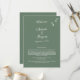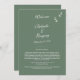 Une belle élégante typographie de style classique design mariage avec une couleur arrière - plan vert olive sage. Un design unique qui utilise une police de faire-part de mariage calligraphie classique personnelle et une branche de feuilles de verdure dessinée à la main. Un design de calligraphie avec des tons vert olive sauge. Un design élégant de carte programme d'itinéraire de mariage avec des éléments traditionnels. Des invitations de mariage et d'autres articles de papeterie sont également disponibles.