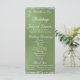 Ce design romantique présente un élégant arrière - plan sage avec des bordures de parties scintillant, détails de la cérémonie de mariage et merci sur le devant avec les membres de la fête de mariage sur le dos. Aussi disponible avec différents arrière - plans de couleur pour vos couleurs mariages. (La Parties scintillant est simulée dans l'illustration). Conçu pour coordonner avec la collection Mariage "Two Shall Become One - Hearts, Doves & Parties scintillant". Pour modifier les détails, cliquez sur "Personnaliser". Pour déplacer le texte ou modifier la taille, la police ou la couleur du texte, cliquez sur "Cliquez pour customiser plus loin"
