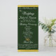 Ce design romantique présente un élégant arrière - plan vert émeraude avec des bordures de ruban, détails de la cérémonie du mariage et merci sur le devant avec les membres de la fête de mariage sur le dos. Disponible en plusieurs couleurs pour votre thème mariage. (Le ruban est simulé dans l'illustration). Conçu pour coordonner avec la collection Mariage "Two Shall Become One - Silver & Gold". Pour modifier les détails, cliquez sur "Personnaliser". Pour déplacer le texte ou modifier la taille, la police ou la couleur du texte, cliquez sur "Cliquez pour customiser plus loin"
