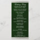 Ce design romantique présente un élégant arrière - plan émeraude avec des bordures de ruban, détails de la cérémonie de mariage et merci sur le devant avec les membres de la fête de mariage sur le dos. Disponible en plusieurs couleurs pour votre thème mariage. (Le ruban est simulé dans l'illustration). Disponible en plusieurs couleurs pour vos couleurs de thème mariage. (Le ruban est simulé dans l'illustration). Conçu pour coordonner avec la collection Mariage "Two Shall Become One - Silver & Gold". Pour modifier les détails, cliquez sur "Personnaliser". Pour déplacer le texte ou modifier la taille, la police ou la couleur du texte, cliquez sur "Cliquez pour customiser plus loin"