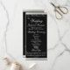 Ce design romantique présente un élégant arrière - plan noir avec des bordures de ruban, détails de la cérémonie du mariage & merci sur le devant avec les membres de la fête de mariage sur le dos. Disponible en plusieurs couleurs pour votre thème mariage. (Le ruban est simulé dans l'illustration). Disponible en plusieurs couleurs pour vos couleurs de thème mariage. (Le ruban est simulé dans l'illustration). Conçu pour coordonner avec la collection Mariage "Two Shall Become One - Silver & Gold". Pour modifier les détails, cliquez sur "Personnaliser". Pour déplacer le texte ou modifier la taille, la police ou la couleur du texte, cliquez sur "Cliquez pour customiser plus loin"