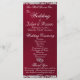 Ce design romantique présente un élégant arrière - plan bordeaux avec des bordures de parties scintillant, détails de la cérémonie de mariage et merci sur le devant avec les membres de la fête de mariage sur le dos. Aussi disponible avec différents arrière - plans de couleur pour vos couleurs mariages. (La Parties scintillant est simulée dans l'illustration). Conçu pour coordonner avec la collection Mariage "Two Shall Become One - Hearts, Doves & Parties scintillant". Pour modifier les détails, cliquez sur "Personnaliser". Pour déplacer le texte ou modifier la taille, la police ou la couleur du texte, cliquez sur "Cliquez pour customiser plus loin"