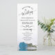 Ce magnifique programme de mariage présente un design élégant avec une seule longue tige turquoise, bleu ciel ou azur rose couché sur son côté réfléchissant dans l'eau. Les titres sont écrits en calligraphie de script sophistiquée, et il y a de l'espace pour vos détails de cérémonie et de mariage, ainsi qu'un bref merci pour vos invités. Merveilleuse façon d'accueillir vos amis et votre famille à votre fête mariage.