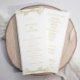 These white and gold wedding programs feature an elegant gold botanical design with clean, classic typography. The order of service is listed on the front, with space on the back for your wedding party, parents’ names, and a short thank-you message. A beautiful choice for formal gold wedding programs with timeless simplicity.