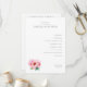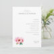 This wedding program features a minimalist and elegant layout with ample white space, creating a clean and sophisticated appearance. The design includes a central heading in a serif font, followed by a list of ceremony components arranged vertically with consistent spacing. A subtle illustration of pink peonies adds a touch of natural beauty to the composition, while the color palette primarily consists of black text against a white background. The typography is formal and traditional, enhancing the ceremonial theme and conveying a mood of elegance and refinement, perfect for celebrating this significant life event.