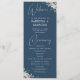 Elégant programme de mariage pour votre journée spéciale lorsque vous échangez des voeux d'amour et d'engagement dans une cérémonie ornée d'élégantes fleurs bleu marine et belle typographie de script. Célébrez votre voyage ensemble, entouré de famille, d'amis, et la beauté de cette occasion capitale.