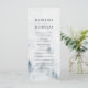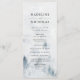 Élégant programme de mariage d'hiver avec vos noms et détails mariages avec une forêt de pins gris et bleu brumeux. Personnalisez les programmes de mariage d'hiver en ajoutant votre date et votre emplacement mariage, l'ordre des événements et la fête de mariage au dos. Conçu pour coordonner avec notre collection Elegant Winter Forest mariage.