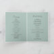 Cet élégant programme de mariage bleu hydrangea blanc plié est parfait pour un mariage de printemps ou d'été. Le design floral classique est composé d'hydrangées bleu poudre douce, agrémentées de fleurs roses neutres et de feuilles verts.