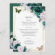 Conçu pour correspondre à notre collection Emerald Green et Purple Floral, ce menu élégant présente des fleurs et des papillons couleur vert émeraude et violet couleur vert émeraude. Personnalisez-le avec votre propre libellé et détails facilement et rapidement, appuyez simplement sur le bouton customiser pour réorganiser et formater le style et le placement du texte. Double face. Idéal pour quinceanera, 16, coing jumeaux, anniversaire jumeaux, baby shower, douche nuptiale, mariage, fête d'anniversaire et plus d'occasions! Coordonnez les articles disponibles au magasin The Happy Cat Studio Zazzle ! c) Le Happy Cat Studio