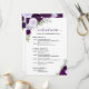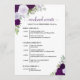 Ces magnifiques cartes sont conçues pour informer vos invités du programme de votre célébration de mariage. Le design rustique boho chic comprend des roses aquarelles peintes à la main, des feuilles d'eucalyptus et de la verdure de jardin dans des nuances de pourpre, de prune et de lavande. Le recto présente une liste d'événements pour tout le week-end, et le verso présente un calendrier détaillé pour le jour du mariage lui-même. Excellent ajout à un sac de bienvenue de mariage, et une merveilleuse façon de remercier vos invités de célébrer avec vous !