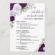 Ces belles cartes sont conçues pour informer vos invités du programme de votre célébration de mariage. Le design chic rustique boho comprend des roses peintes à la main à l'aquarelle, des feuilles d'eucalyptus et de la verdure de jardin dans des tons de pourpre, prune et lavande. Le devant comporte une liste d'événements pour tout le week-end, et le dos présente un calendrier détaillé pour le jour du mariage lui-même. Excellent ajout à un sac d'accueil de mariage, et une merveilleuse façon de remercier vos invités de célébrer avec vous !
