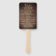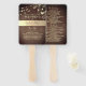 Gardez vos invités frais et informés avec cet élégant éventail à main double face pour mariage. Caractéristiques un fond en faux bois, des accents floraux dorés, des guirlandes lumineuses et un espace pour les détails de la cérémonie et les noms des participants au mariage. Une touche parfaite pour les célébrations d'automne, rustiques ou en plein air.