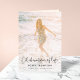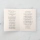 Un programme funéraire plié moderne et minimaliste pour célébrer la vie de votre être aimé dans un style épuré minimaliste simple, avec une police de caractères manuscrite élégante et un arrière - plan de pêche pastel doux. Le modèle design peut être facilement personnalisé avec votre propre photo et texte pour créer un hommage spécial pour les funérailles, le mémorial ou la célébration de la vie de votre être aimé. L'image montrée n'est à des fins d'illustration que pour être remplacée par votre propre photo. L'image de l'espace réservé montre une jeune femme heureuse aux cheveux longs et ondulés portant une élégante robe d'été pastel et florale chic, debout dans la mer au coucher du soleil sur une plage de sable dans les vagues peu profondes. #funérailles #orderofservice