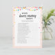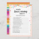 Joli jeu de baby shower à thème fiesta avec des lumières à cordes colorées et des confettis. Qui connaît maman mieux ? Le jeu de baby shower est amusant pour tout le monde. Voyez combien de réponses vous avez raison - celui qui a les réponses les plus correctes gagne!