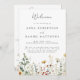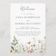 Ce design présente une bordure en aquarelle de fleurs sauvages dans les tons or, rouge, bleu et vert. Parfait pour les mariages du printemps et de l'été.