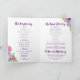 Ce programme de mariage plié de fleurs d'aquarelle violette et rose est parfait pour un mariage à thème fleuri. Le design est composé de magenta clair, rose, prune, violet et fleurs bleues, et d'une belle police de caractères gras. Inclure le nom de la mariée et du marié, la date et le lieu du mariage, le message de remerciement, l'ordre de service, la fête de la mariée et un mémorial "en mémoire d'amour".