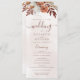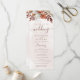 Cartes de programme de mariage de style bohème moderne avec des fleurs d'aquarelle et des feuilles de chute dans les tons de terre comme rouille brun, orange brûlé et terre cuite. Un choix parfait pour les mariages d'automne.