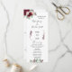 Carte de programme de mariage avec bordeaux & verdure fleurie, petits doodles et noms de calligraphie.