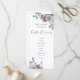 Ce design élégant présente de belles illustrations florales simplistes en bleu poussiéreux et rose saumon des coins supérieur droit et inférieur gauche sur l'avant, et un motif de fleurs coordonné sur le dessus sur l'arrière. L'en-tête principal Order of Ceremony est dans un script noir et élégant et le reste du texte sur le devant et le dos peut être facilement personnalisé à vos propres détails. Vous pouvez également modifier les couleurs de texte modifiables si vous le souhaitez via l'option de personnalisation supplémentaire.