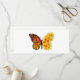 Orange, detailed monarch butterfly with wing decorated with yellow, vibrant California poppy on white background.
