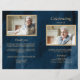 Programme funéraire mettant en vedette sur le devant une photo du défunt, son nom, ses dates, le lieu du mémorial, la date de l'événement et l'élégant cadre doré. A l'intérieur se trouve une nécrologie et un ordre de service ; et au dos une autre photo, une note de remerciement et le deuxième lieu pour après les funérailles. REMARQUE : Ceux-ci viennent comme un morceau plat de papier de qualité, vous aurez besoin de les plier vous-même.