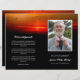 Programme funéraire sur le thème du lever du soleil, avec une photo de votre être cher contre un arrière - plan d'un rassemblement d'oiseaux qui s'envole à travers un ciel rouge éclatant. Ajoutez leur nom et leurs années de vie en même temps que la nécrologie, l'ordre de service, et les remerciements dans une combinaison de polices blanches modernes et élégantes contre un arrière - plan noir. Le programme de service commémoratif Bird at sunrise vous pouvez vous plier personnalisées avec une photo de votre être aimé avec leur nom et leurs années de vie. Sur le dos vous pouvez écrire la nécrologie et le programme. Pliez-le vous-même pour un programme pratique !